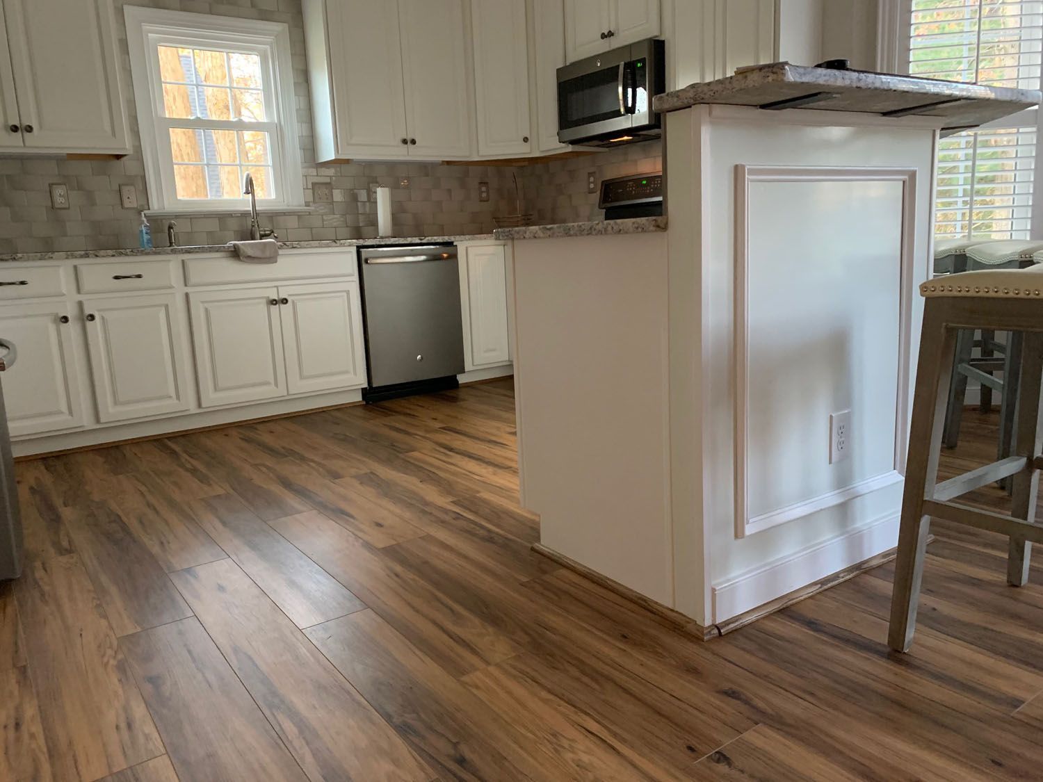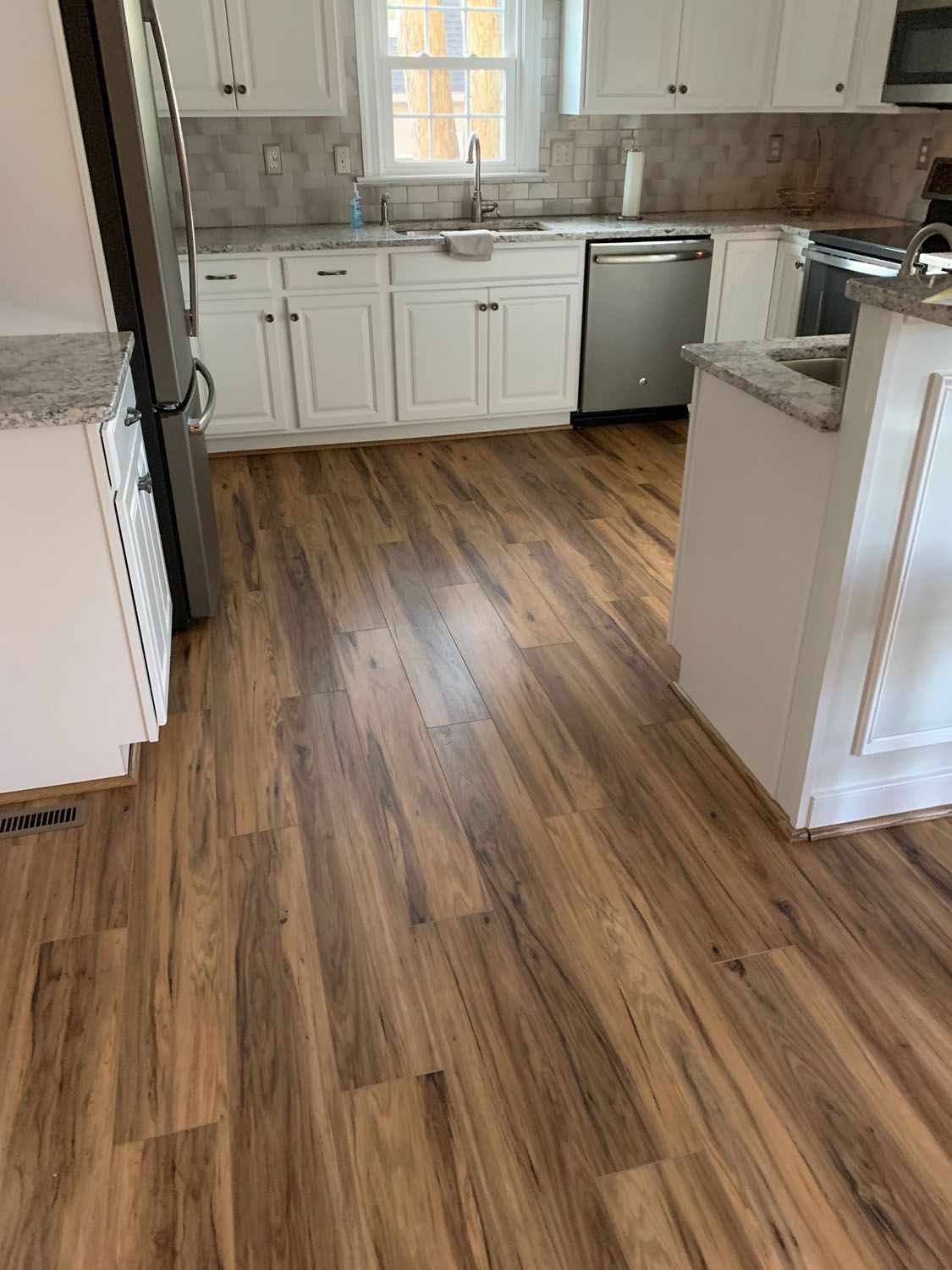 In this project, Colonial Floors of VA expertly sanded and refinished the existing floors to bring out their natural beauty. Additionally, we completely revitalized the kitchen by removing multiple layers of old linoleum and replacing them with elegant luxury vinyl tile. The result is a seamless, refreshed look throughout the home, combining timeless charm with modern durability.